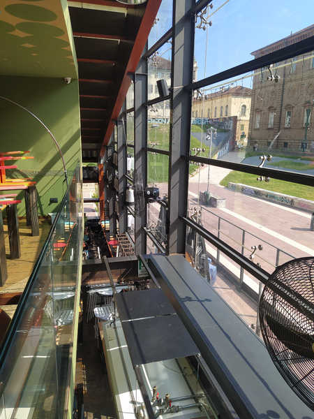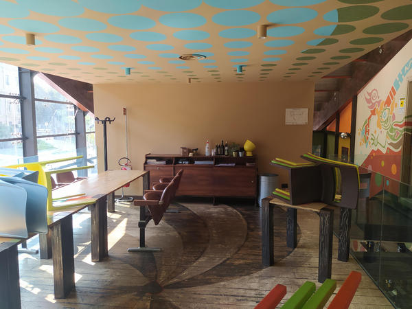 Gli ambienti strettamente funzionali al parcheggio risultavano inizialmente collegati alla rimanente superficie coperta, un tempo adibita a sala polivalente, attraverso una vetrata con porte apribili. Dal 2012 i locali della sala polivalente sono stati affidati in concessione per essere destinati a “somministrazione di alimenti e bevande e attività ricreative e turistiche in generale”. Il concessionario ha eseguito opere di allestimento interno realizzando anche una separazione fissa compartimentata con gli spazi funzionali al parcheggio, recuperando, quale superficie utile, un livello ammezzato, in parte al di sopra di porzione dei predetti locali in uso al parcheggio ed in parte con un nuovo soppalco.
