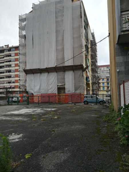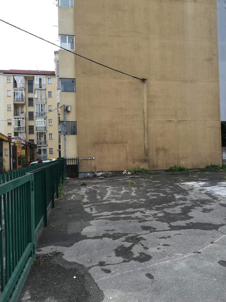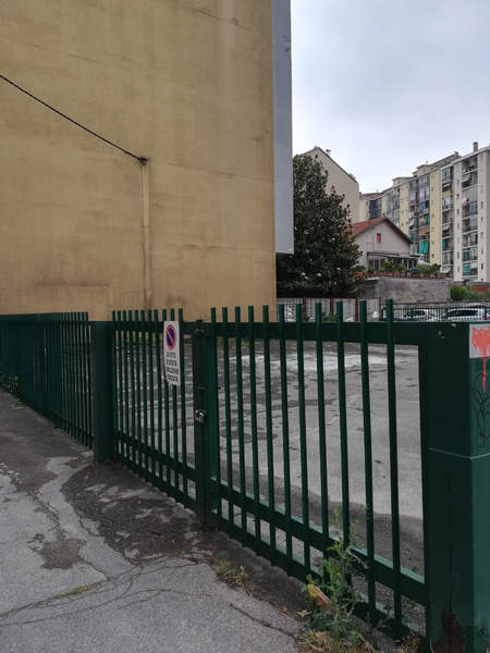 L’area, di forma regolare, ha una superficie di 370 mq circa, è asfaltata e delimitata da recinzione metallica dell’altezza di 1.50 m; l’accesso alla stessa avviene tramite cancelli carraio e pedonale posizionati sul lato prospiciente la via interna privata parallela a via Gianfrancesco Re.