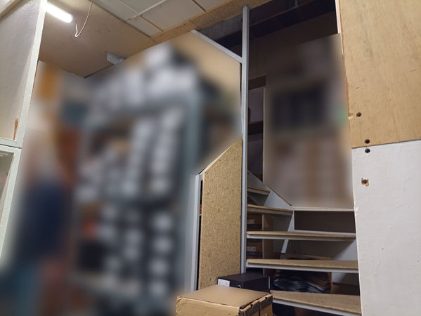 - al piano ammezzato si trovano un disimpegno, cinque locali ad uso ripostiglio, di cui uno con altezza inferiore a 1,50 m, ed un piccolo bagno interno con antibagno.