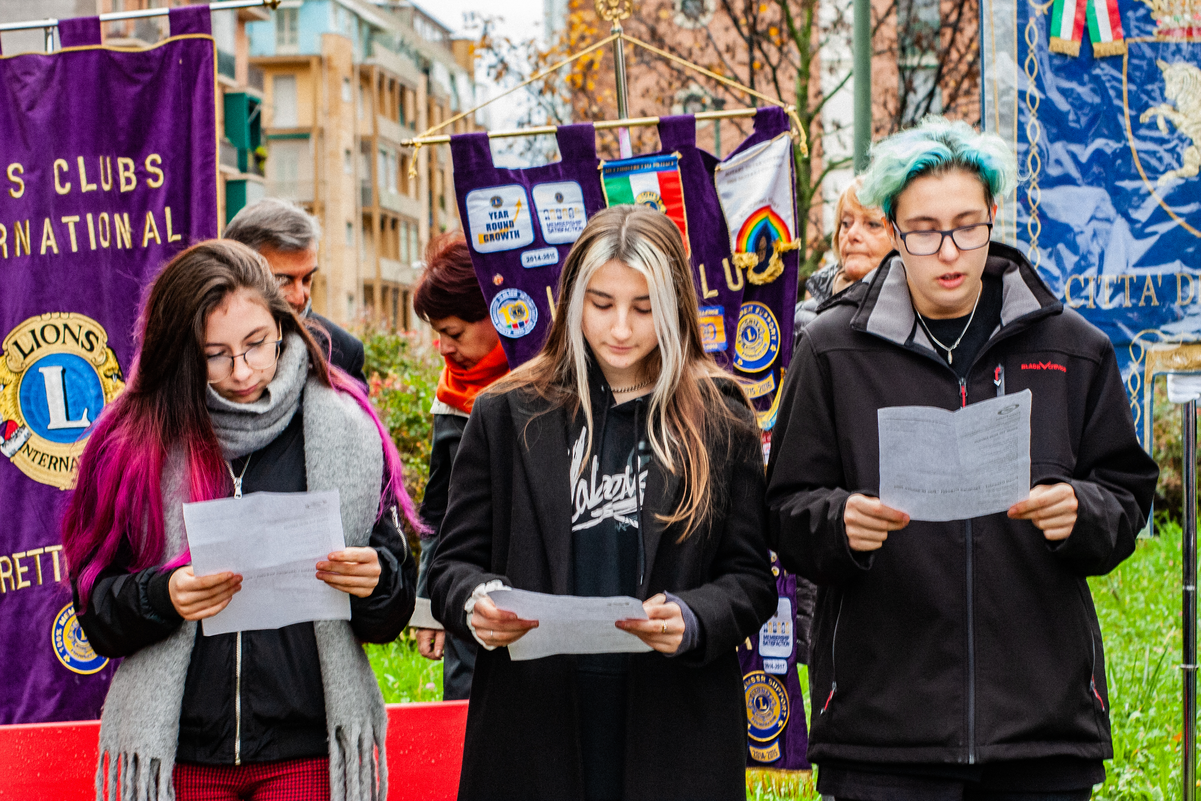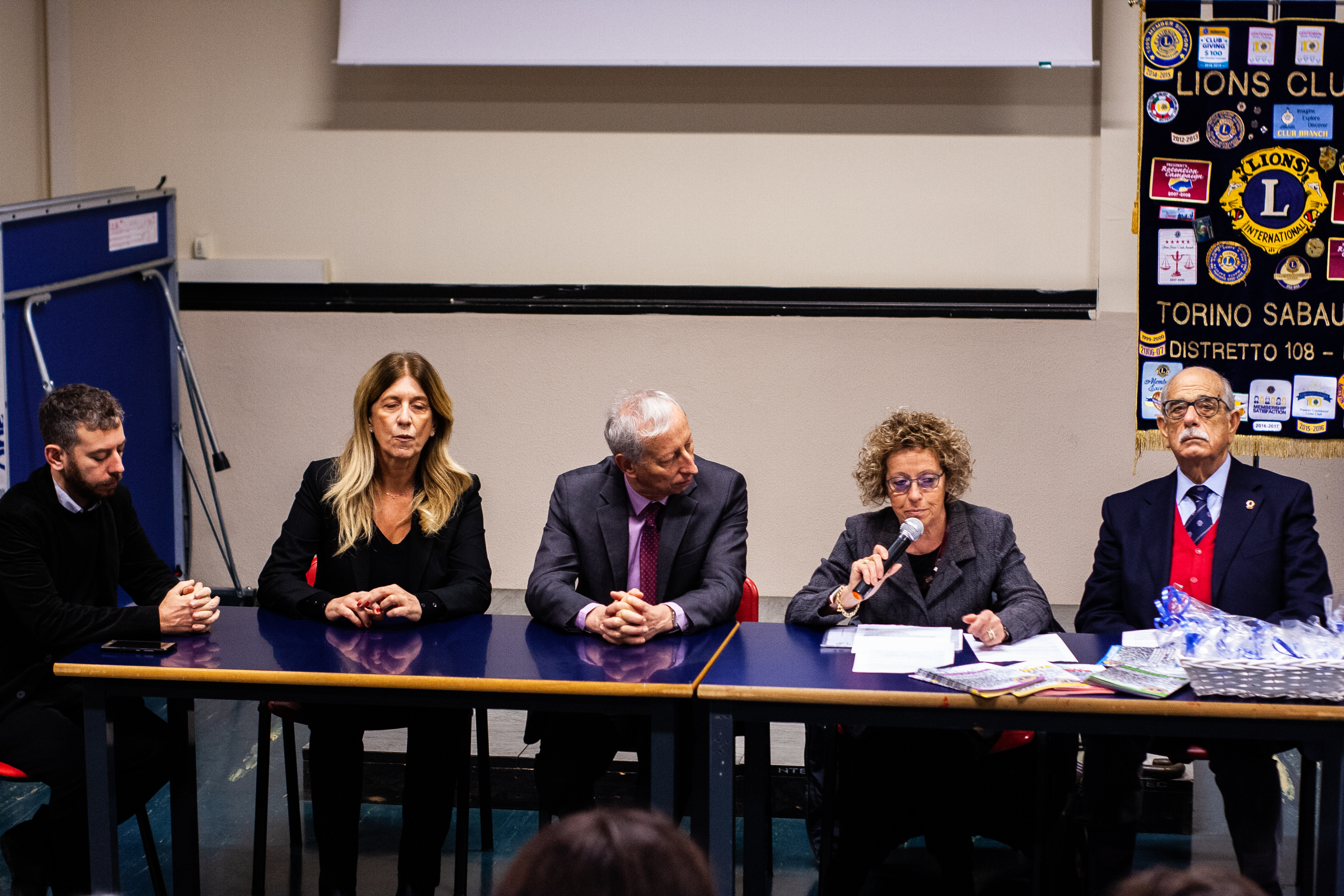 Come da programma, dopo la posa della panchina rossa, nel giardino intitolato nel 2014, su proposta della Consulta Femminile Comunale, alle "Vittime di femminicidio" sito in via Chambery, la cerimonia è proseguita presso il liceo scientifico Carlo Cattaneo con la presenza dell'assessore alle pari opportunità del Comune di Torino, della presidente della circoscrizione 3, dei docenti e allievi del liceo scientifico, del governatore e delle presidenti dei Lions Club Torino Sabauda e Torino Crocetta Duca D'Aosta, della rappresentante del Lions Club presente in Consulta, della presidente e alcune delegate della Consulta Femminile Comunale.