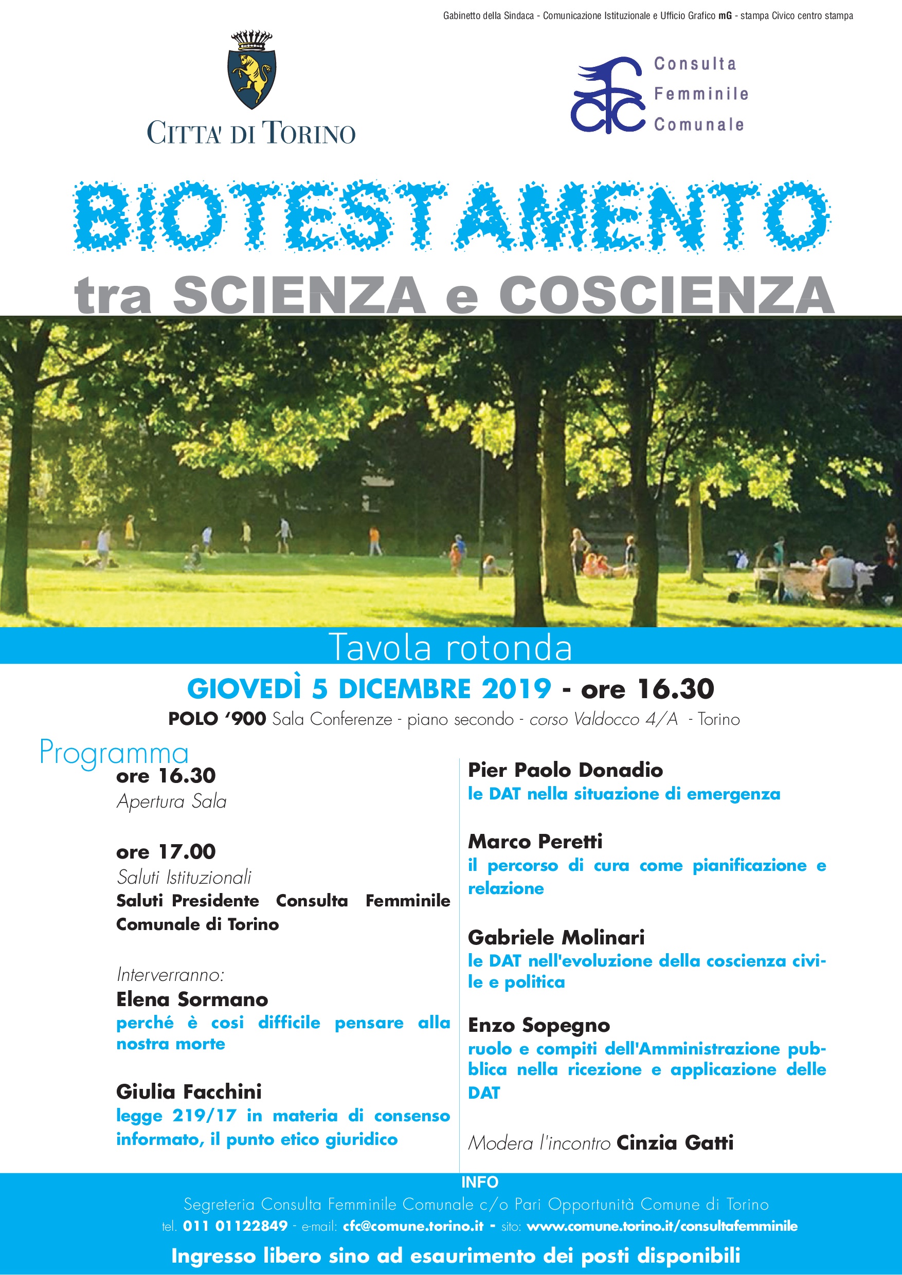Il Polo del '900 ha ospitato il 5 dicembre 2019 il convegno "Biotestamento tra scienza e coscienza", promosso dalla Consulta femminile del Comune di Torino, presieduta da Silvana Ferratello.
