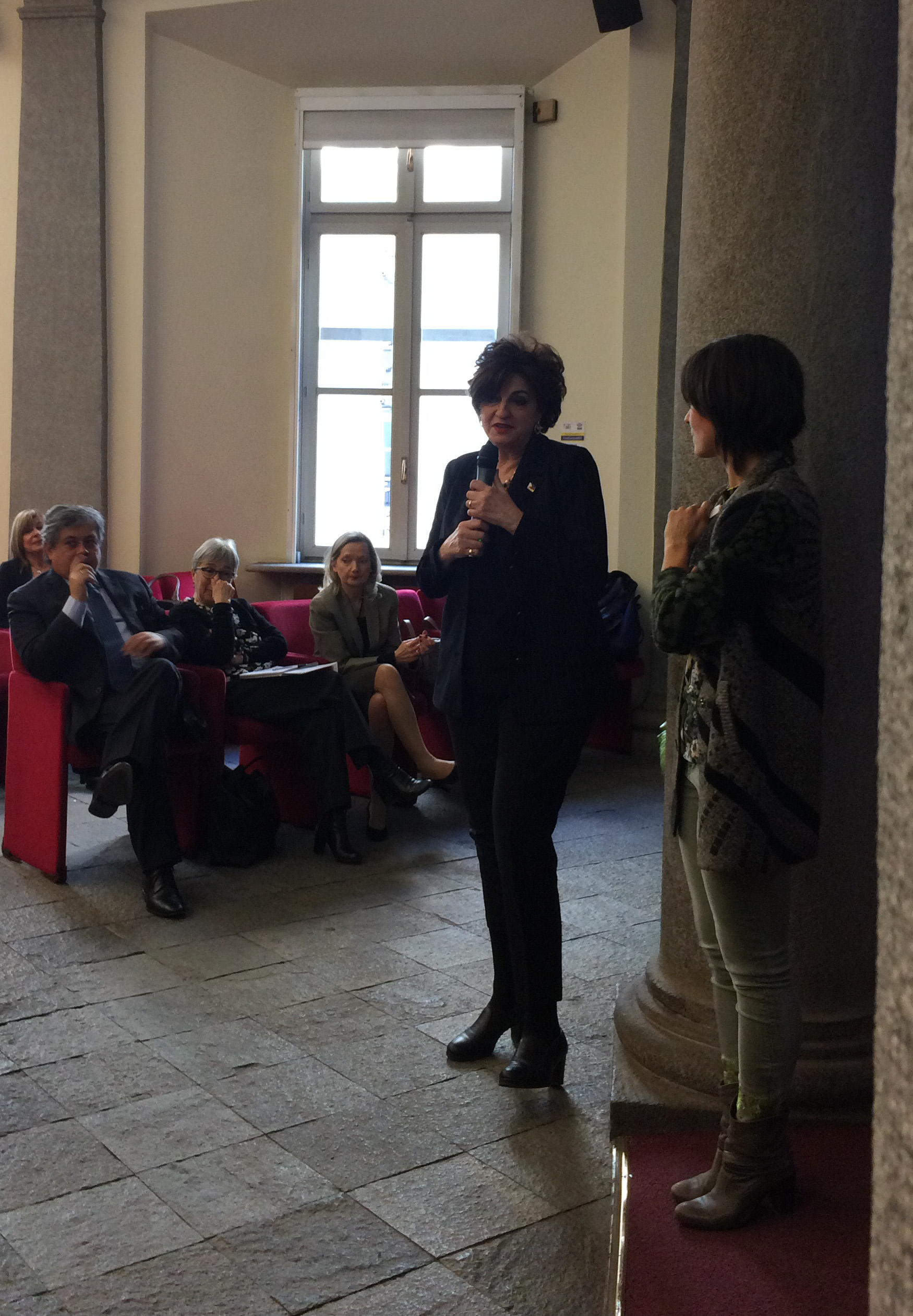 È stato proiettato in sala il video della Senatrice Emma Bonino che dopo i suoi saluti ha illustrato un quadro dei maggiori conflitti che hanno comportato una forte migrazione, esponendo la condizione delle donne in tali contesti e la funzione di mediazione che le donne svolgono.