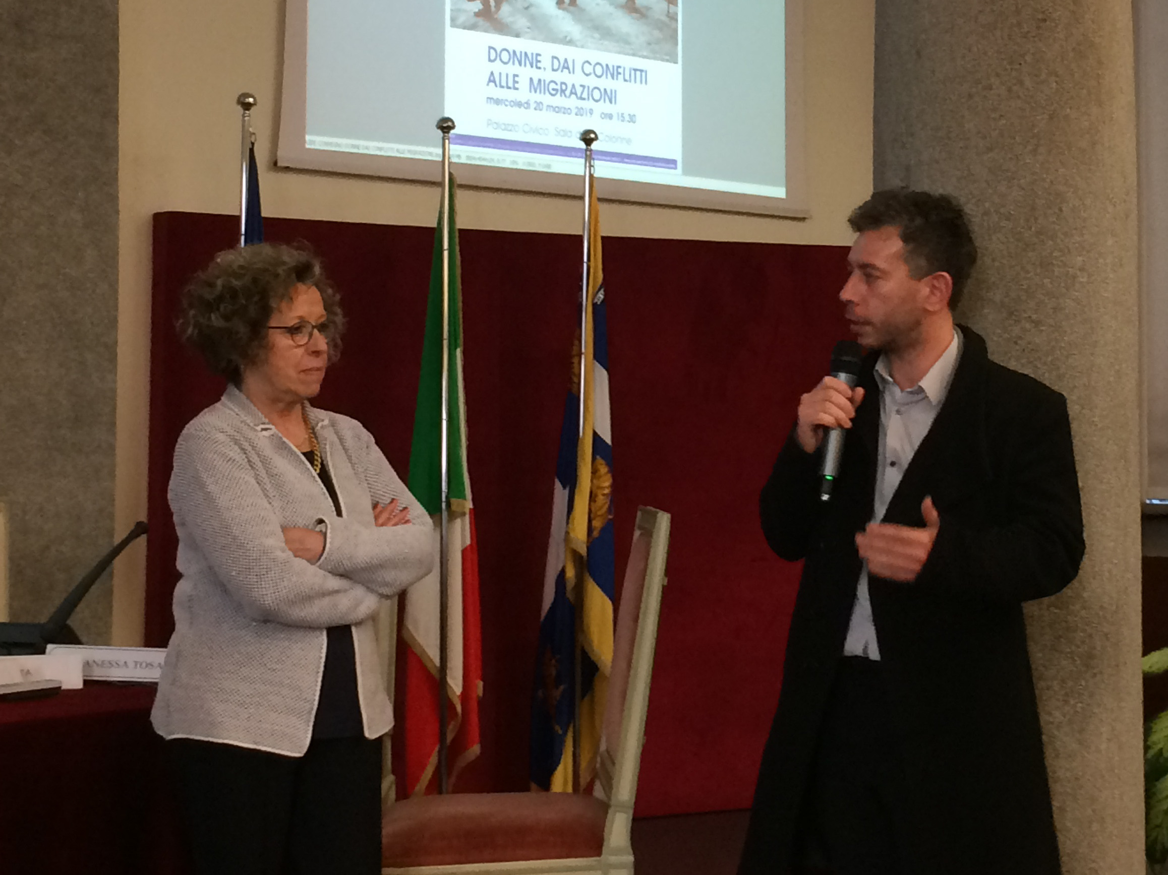 La Consulta Femminile Comunale ha organizzato alle ore 15:30 del 20 marzo 2019 in Sala delle Colonne, il convegno "Donne, dai conflitti alle migrazioni", con i saluti istituzionali a nome della Sindaca del Vice Presidente del Consiglio Comunale Enzo Lavolta.