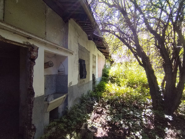 - la delimitazione del costruito continua con il lato posteriore delle fabbriche, costituito da un muro formante una linea poligonale che va a connettersi con il lotto di proprietà privata.