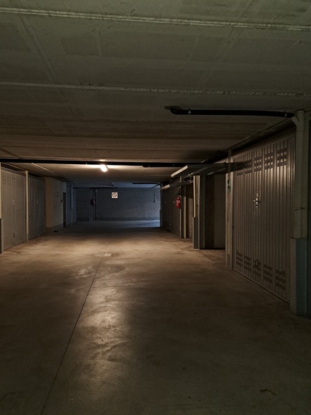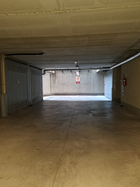 Il complesso del quale il box fa parte è costituito da un edificio che si eleva a otto piani fuori terra (oltre a due piani interrati) e un cortile condominiale: l’immobile in oggetto è ubicato al secondo piano interrato ed è raggiungibile attraverso le rampe carrabili e l’accesso pedonale a servizio dell’autorimessa, posti sulla via Tolmino, e da scala esterna posta nel cortile. Il pavimento è in battuto di cemento, mentre la porta basculante di accesso in alluminio.