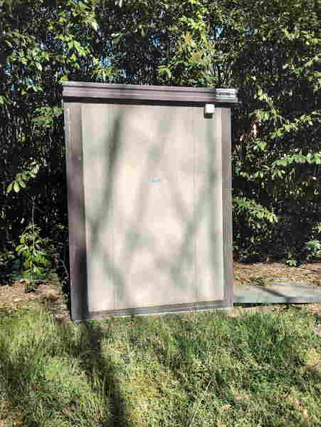 Completa l’area attrezzata un bagno prefabbricato, una tettoia in legno con sottostante bancone ed un armadio in ferro.