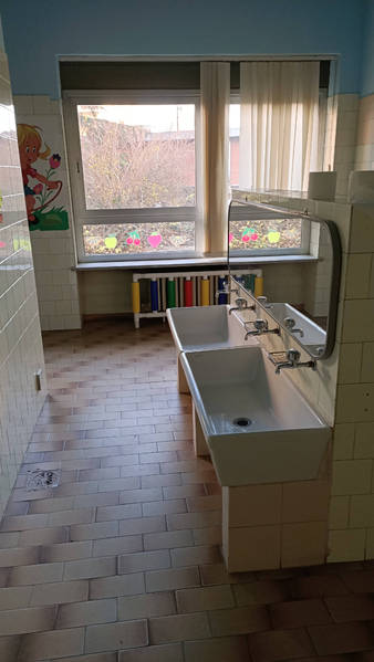 Locali: tre coppie di aule, cucina, due locali di servizio, un locale ad uso ufficio e due blocchi destinati a servizi igienici, oltre ad area verde esterna pertinenziale all'edificio