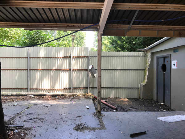 L’area risulta recintata con strutture temporanee ed è possibile accedere al suo interno tramite due ingressi distinti, uno per l’accesso al fabbricato ed un altro per l’area esterna.