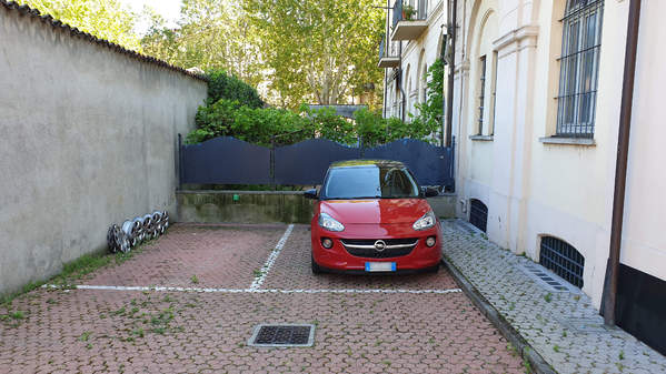 Il posto auto scoperto è di circa 12 mq. ed è sito all’interno dell’area cortilizia del Condominio ubicato in via Santa Chiara 56. L’accesso comune è assicurato da ingresso pedonale e da cancello automatizzato; il cortile, così come il posto auto, è pavimentato in blocchetti in calcestruzzo esagonali.