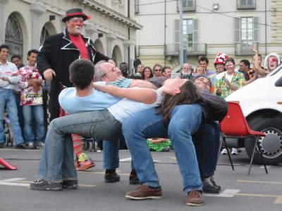 Cittą di Torino > Casa e territorio > Progetto the Gate > Ambiente culturale > Teatro > Un naso rosso contro l'indifferenza - Miloud e i ragazzi di Bucarest al Balon > Immagini